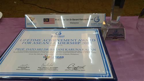 The Global Youth Parliament was awarded the "Lifetime Achievement Award" for ASEAN Youth Leadership 2019.